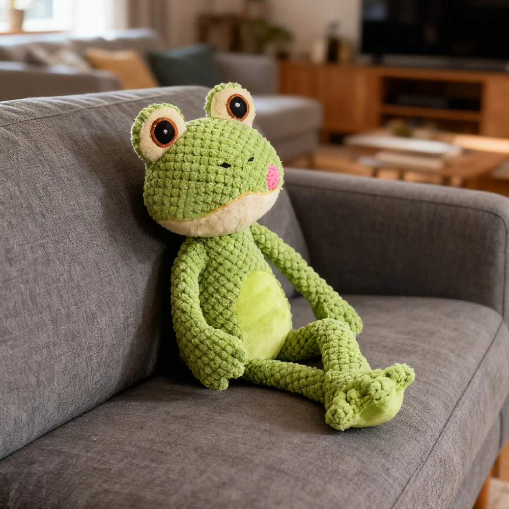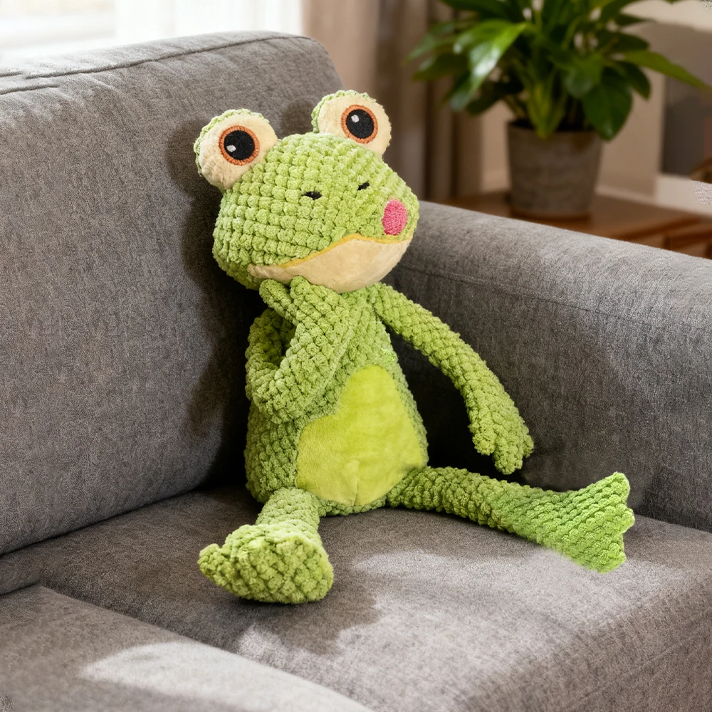 Chew-Resistant Cartoon Frog Design Plush Interactive Toy with Sound