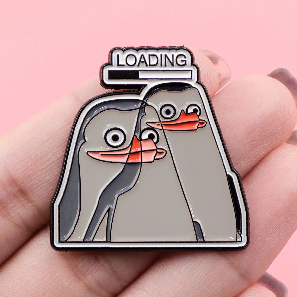 Penguin "Loading" Enamel Pins Funny Jewelry Gifts